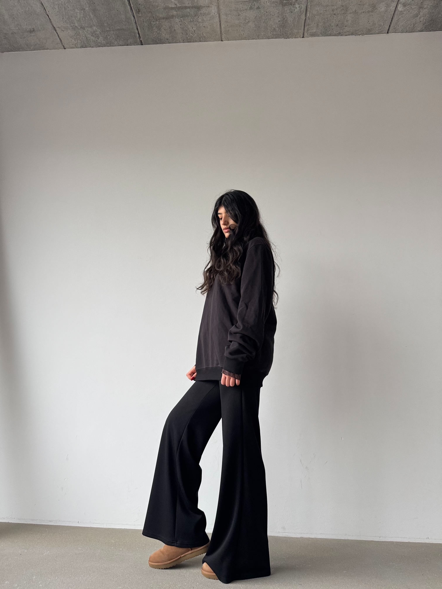 Spodnie dzwony LANA slim Warm czarne BLACK